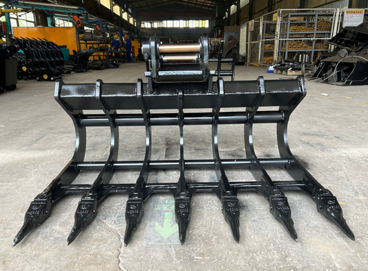 42" Excavator Scoop Rake fits 3.5 Ton - 6 Ton Excavator with Wedge, Pins and X-Change Couplers