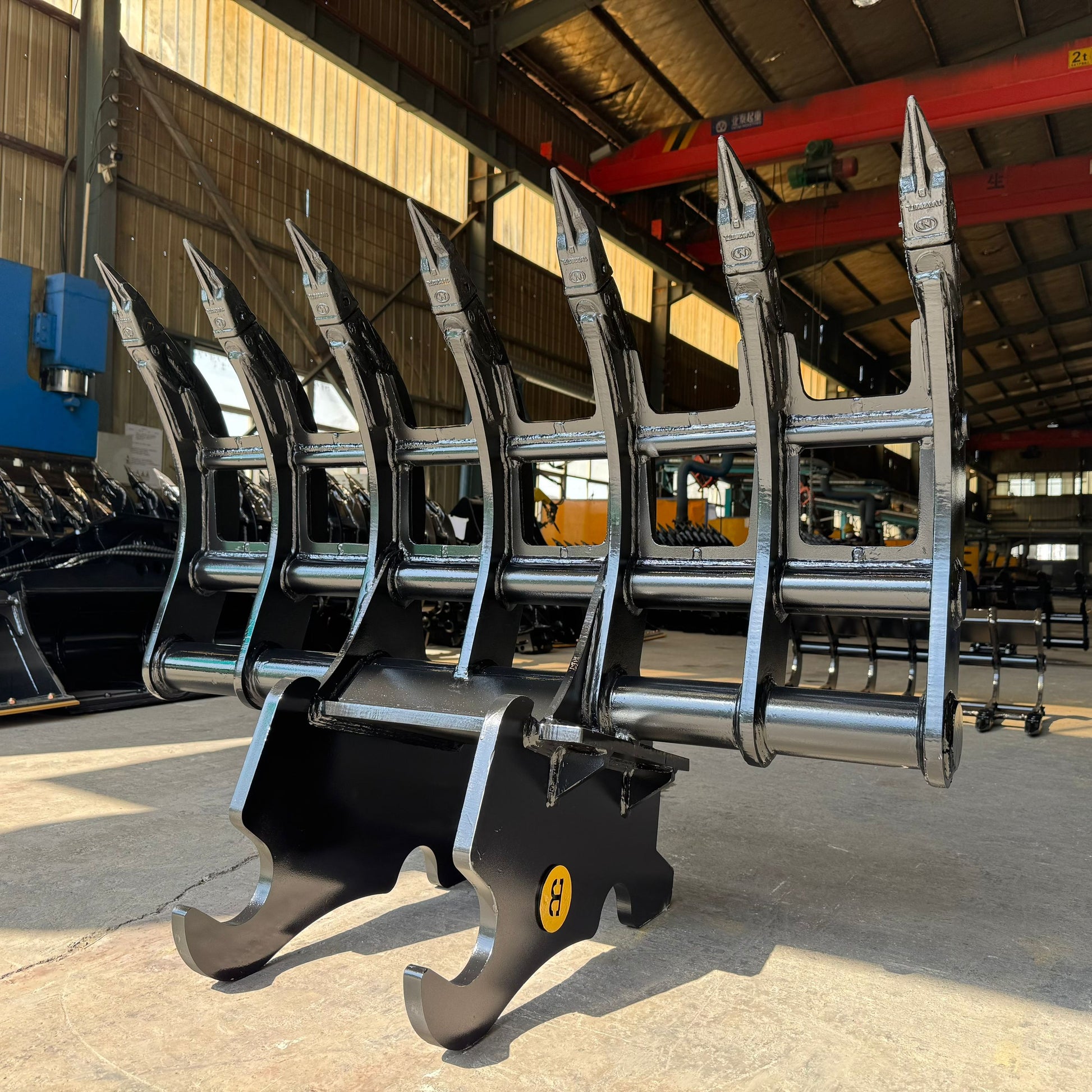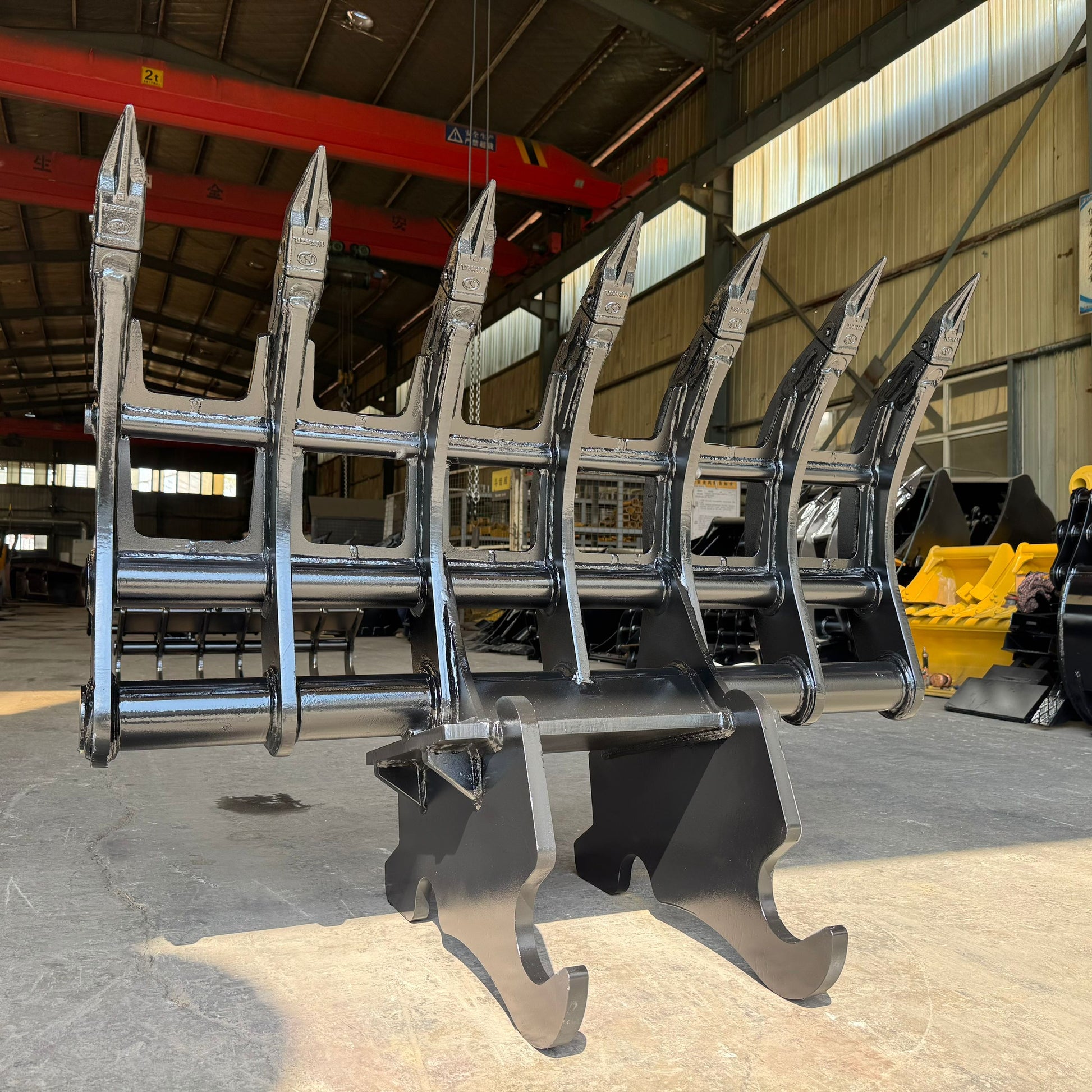 Take on heavy-duty clearing jobs with this 54" excavator brush rake, designed for 10-12 ton machines. Constructed from premium T1 and AR400 steel, it offers outstanding durability and performance in tough conditions. Replaceable pin-on teeth make maintenance simple and cost-effective. Compatible with a range of excavator models, this root rake is perfect for clearing brush, roots, and debris with efficiency.