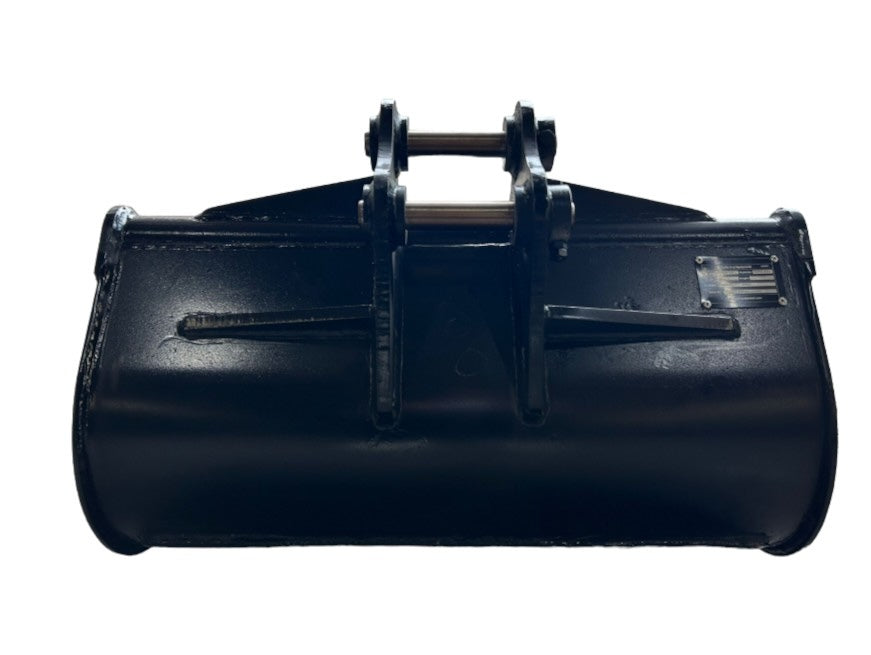 This excavator bucket can be made to fit John Deere, Yanmar, Caterpillar, Bobcat, Kubota, Sany, XCMG, and any other mini excavator with wedge style or pin on style lugging.